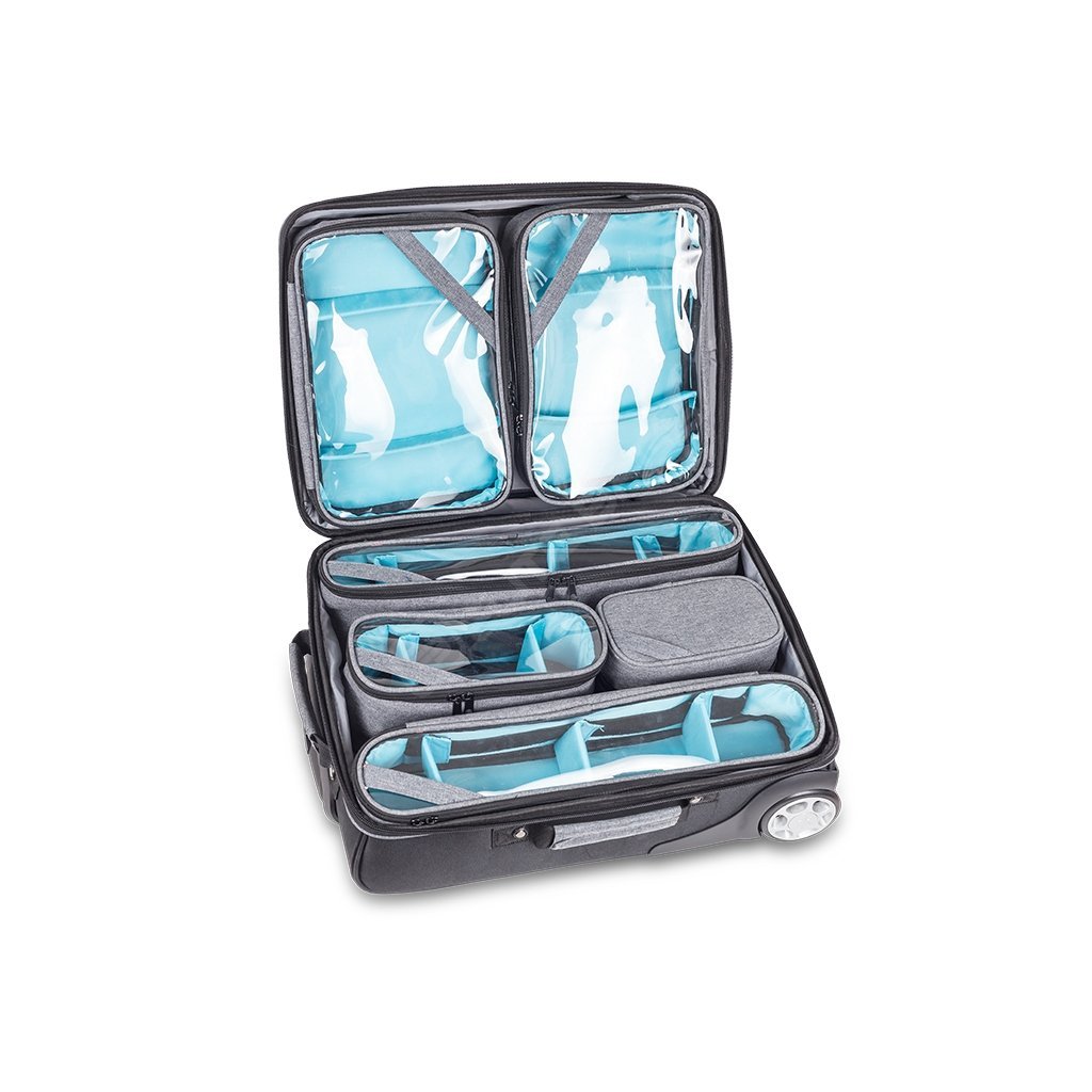- vestavěná konstrukce vozíku, teleskopická rukojeť a kolečka