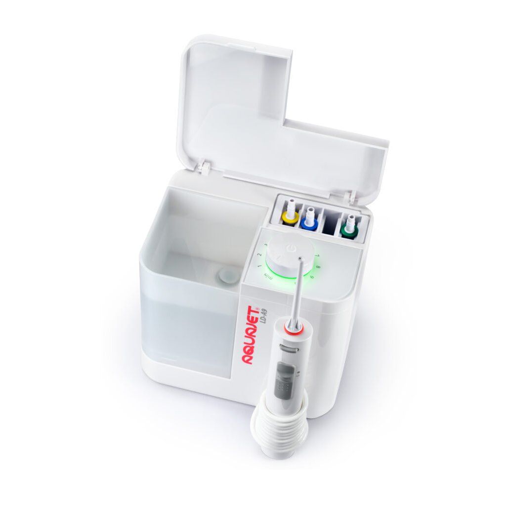 Ústní sprcha AQUAJET LD-A9 je výkonný stolní model určený pro důkladnou dentální hygienu v domácím prostředí. Efektivně odstraňuje zbytky potravy, plak a bakterie z mezizubních prostor i podél dásní, kde běžný kartáček nestačí.