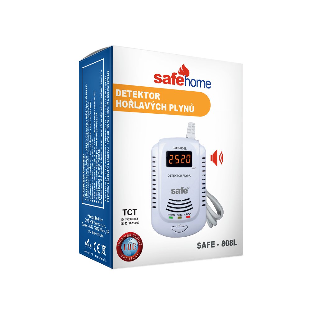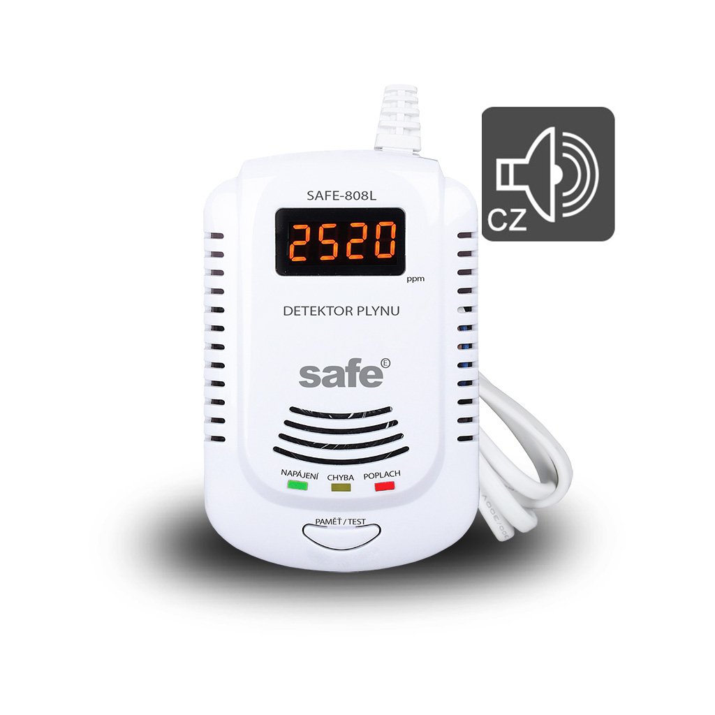 Digitální hlásič SAFE - 808L se ideálně hodí pro detekci úniku plynu ze všech domácích plynových spotřebičů a plynových kotlů. Detekuje všechny hořlavé plyny běžně se vyskytující v domácnostech.